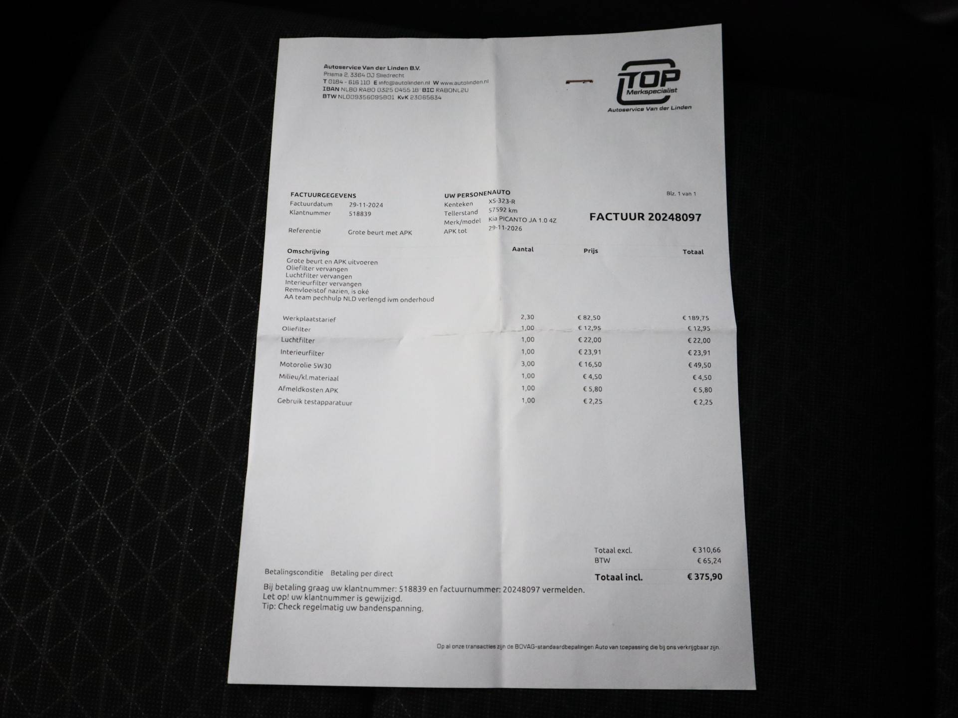 ✔️ BOVAG Afleverbeurt – volgens fabrieksschema