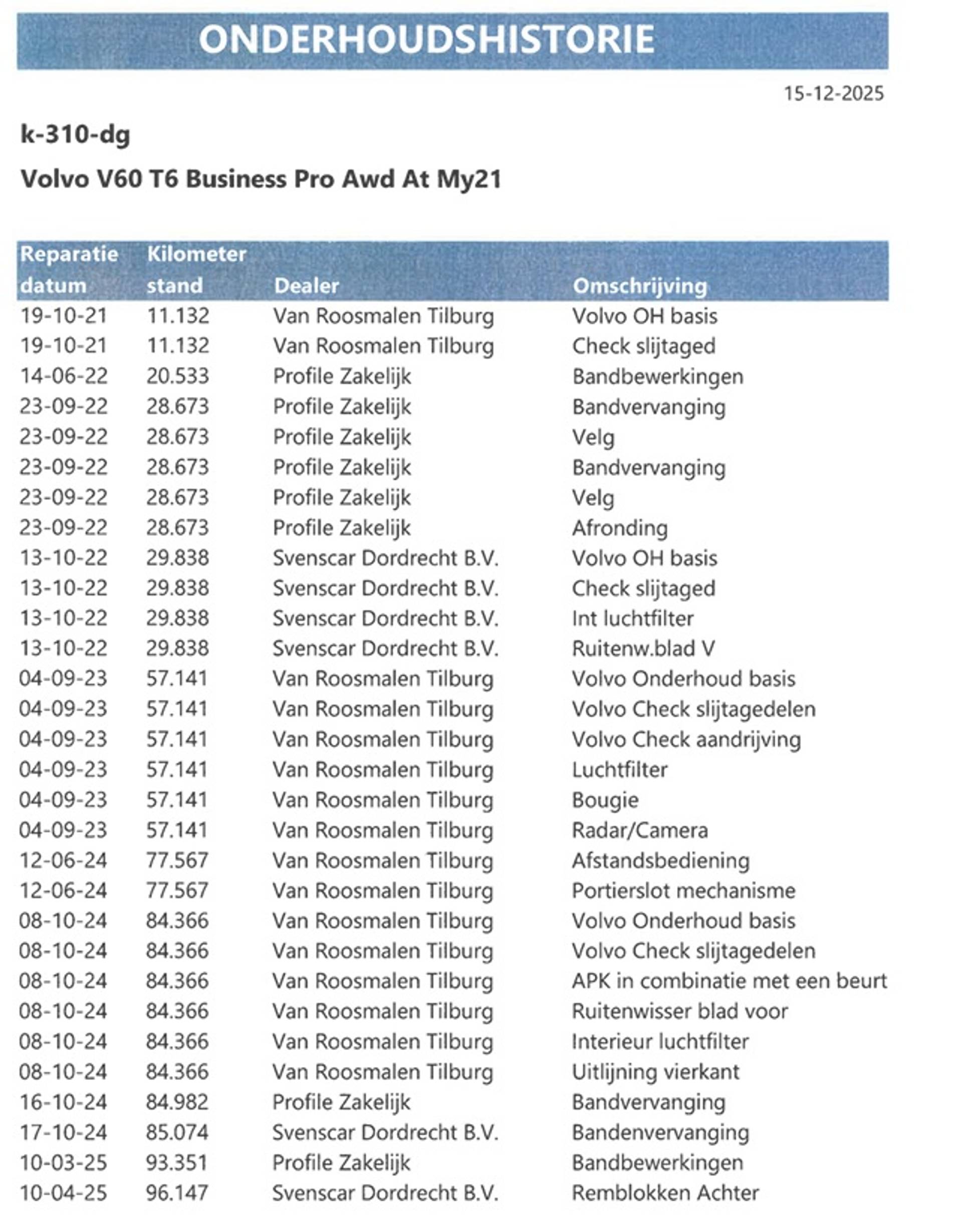 ✓ Onderhoud verleden aanwezig