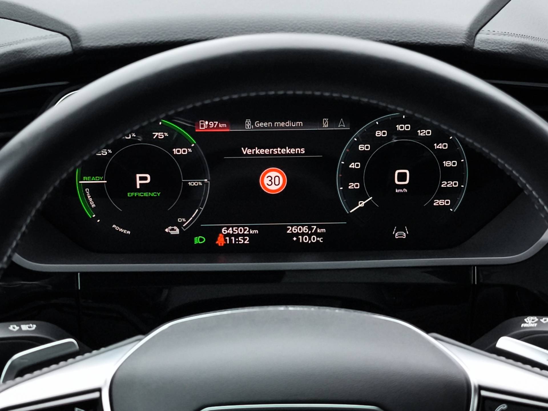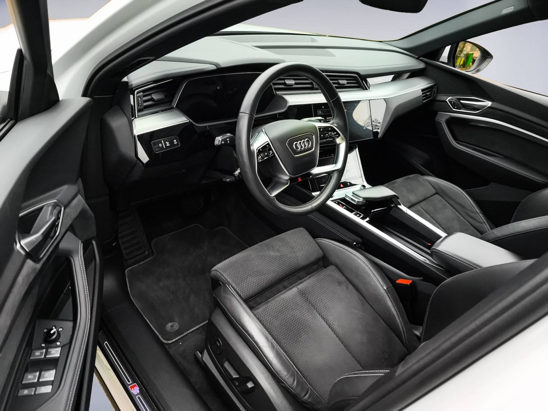 Zoals u mag verwachten van deze Audi e-tron is hij uitgerust met een reeks aan actieve veiligheidssystemen. Ongemerkt buiten de rijstrook raken? Nee hoor, het Lane-keeping systeem waarschuwt en corrigeert. Het forward collision warning-systeem berekent via een sensor de afstand tot het verkeer vóór u en komt in actie als er gevaar bestaat van een botsing. Verder is deze auto uitgerust met brake assist en bandenspanningcontrolesysteem.