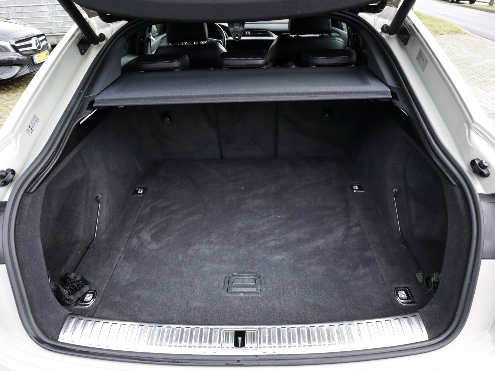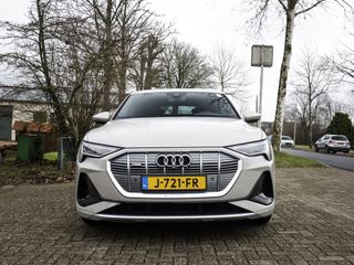 U voelt de onbeperkte kracht van elektrische aandrijving, elke keer als u op weg gaat met deze Audi e-tron Sportback. De voordelen van de elektromotor spreken voor zich: stil, schoon en snel! Exclusiviteit en sportiviteit komen samen in de S-Line styling. Een krachtige motor geeft deze auto zijn sportieve prestaties. Een eyecatcher is het lederen interieur. Maar onderschat ook het voordeel van een aantal 'kleine' details niet, zoals het elektrisch bediende glazen panorama dak en de elektrisch bedienbare achterklep. Een koude start op frisse dagen? Niet met de behaaglijke stoelverwarming. Op ieder wegdek een rimpelloze wegligging: dat is het voordeel van luchtvering. Ook achterin heerst een luxe sfeer, vanwege de verwarmde achterbank. Ook 20 inch lichtmetalen velgen, LED koplampen, adaptief dempingsysteem, warmtewerend glas, LED-achterlichten en verstelbare lendensteunen zijn aan boord.