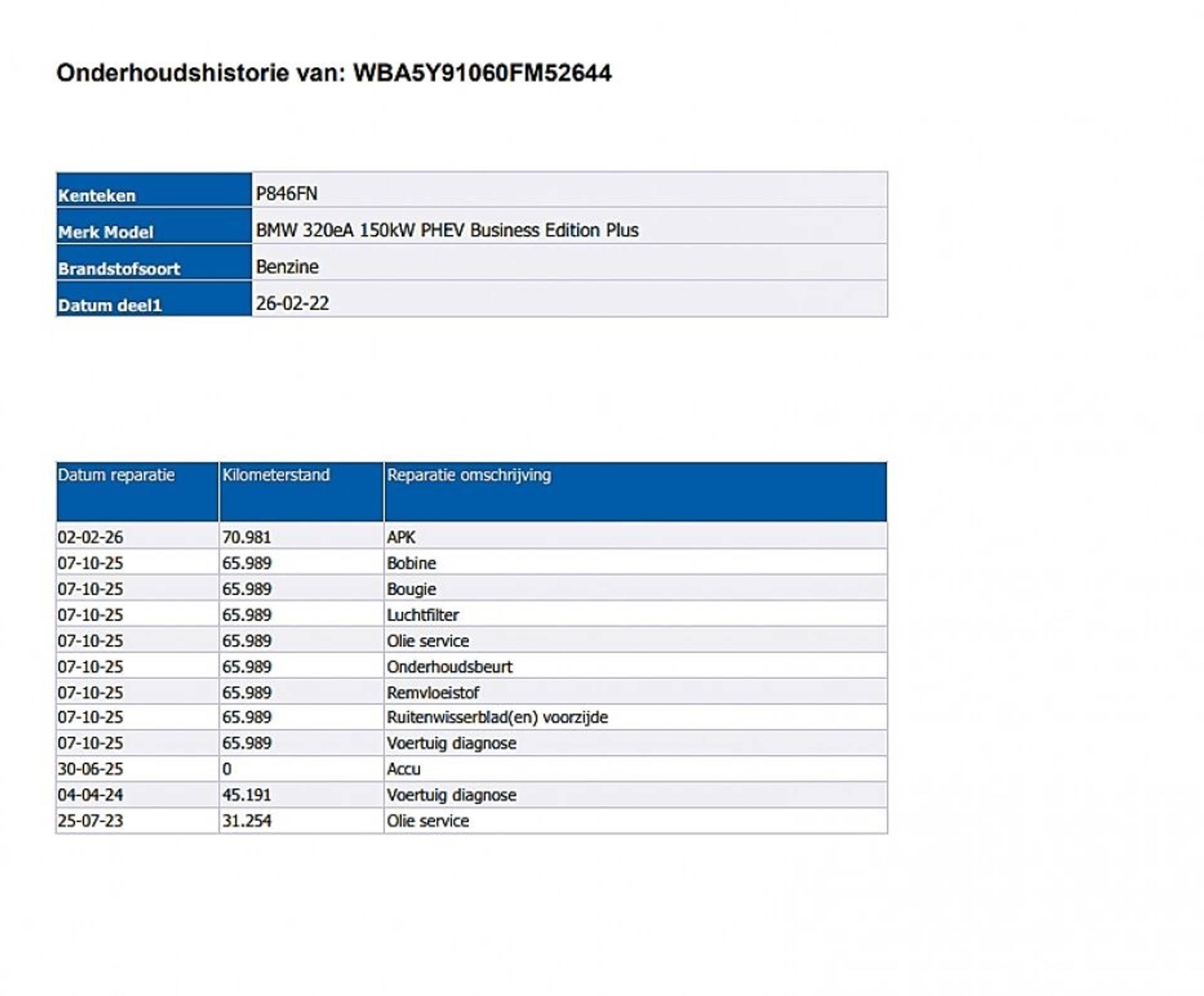✓ Onderhoud verleden aanwezig