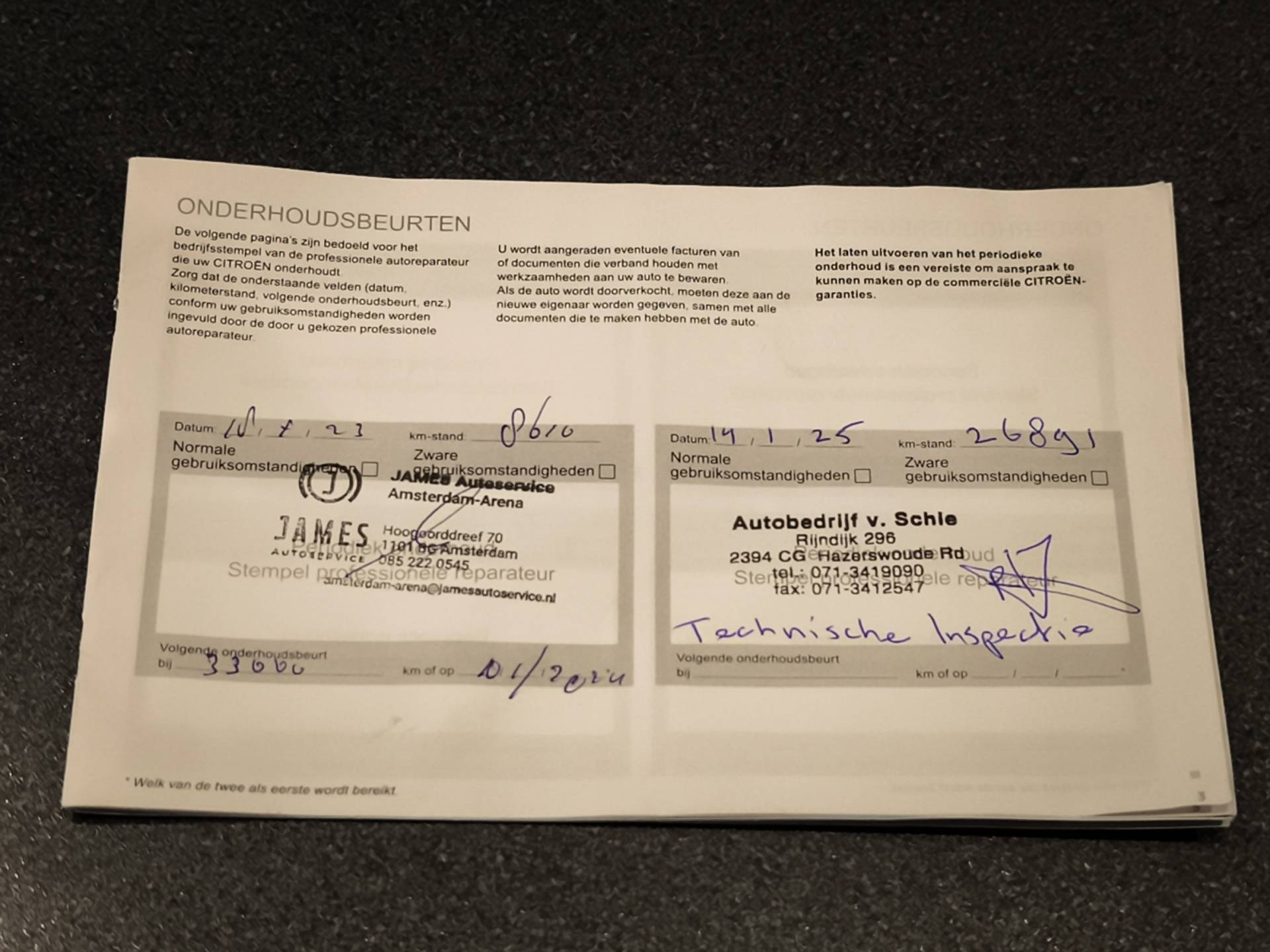 Onderhoudsboekjes aanwezig
