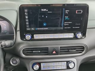 Een nieuw tijdperk breekt aan. Emissievrij rijden is niet langer toekomstmuziek met deze elektrische Hyundai Kona. Fiscaal aantrekkelijk is de elektromotor, waarmee u niet alleen stil maar ook uitermate pittig kunt rijden. Een krachtige motor geeft deze auto zijn sportieve prestaties. Met het lederen interieur ervaart u direct het gevoel van luxe en comfort. De verwarmbare voorstoelen benadrukken nog maar eens dat we hier te maken hebben met een regelrechte verwenauto voor bestuurder en bijrijder. Tot de uitrusting behoren ook 17 inch lichtmetalen velgen en donker getint glas achter.