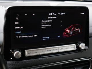 De nieuwste veiligheidssystemen komen in deze Hyundai Kona samen. Indien u onbedoeld de rijstrook lijkt te verlaten, reageert het Lane-keeping systeem meteen en corrigeert. Onbedoeld bumperkleven is er niet bij, dankzij de forward collision warning. Die waarschuwt direct als een botsrisico met uw voorligger dreigt. Bovenop deze veiligheidsfeatures heeft deze Hyundai bovendien head-up display, dodehoekdetectie, hill hold functie en bandenspanningcontrolesysteem.