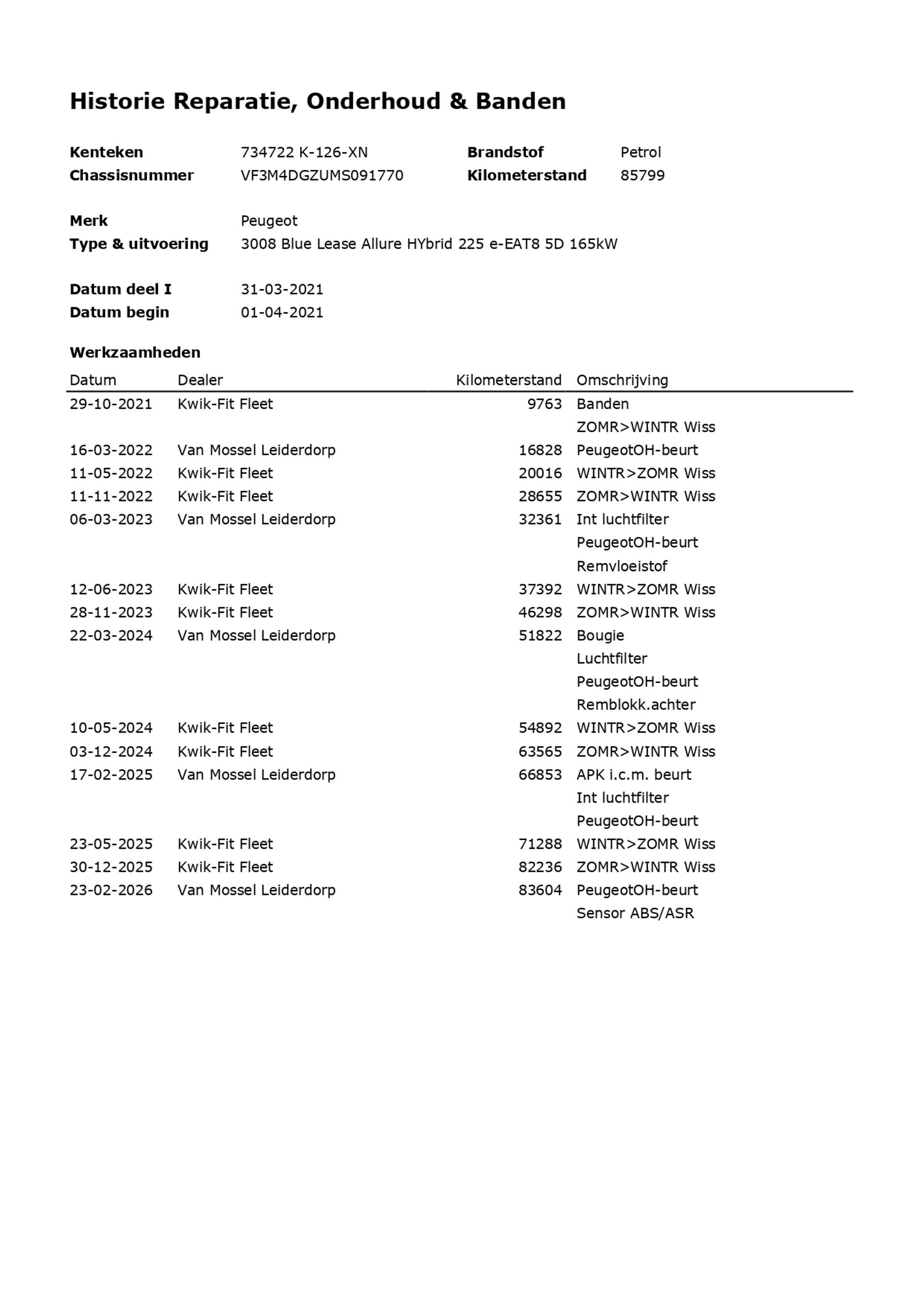 85.799 km Logische kilometerstand 31-03-2021 APK tot 31-03-2027
