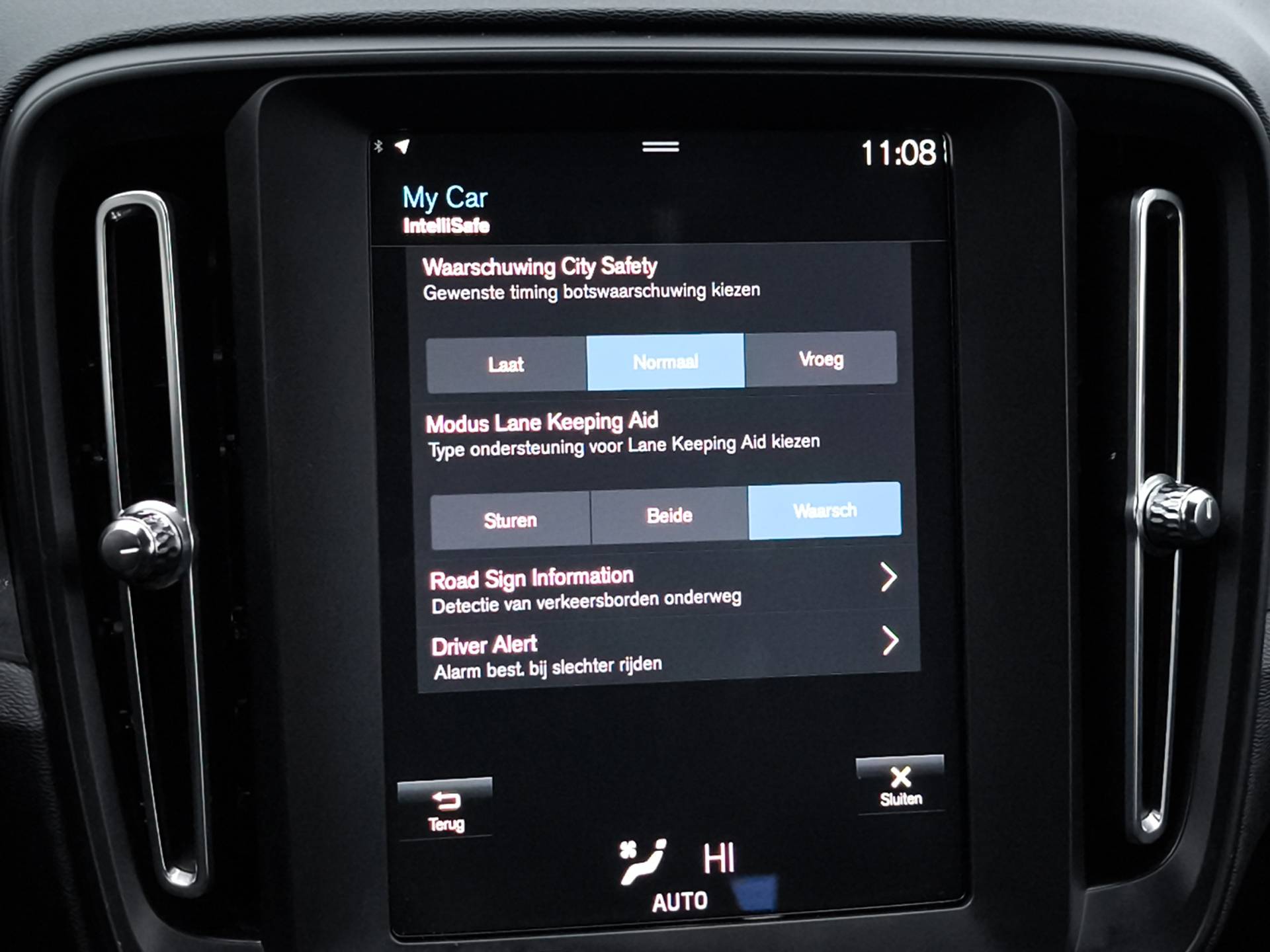 Met de nieuwste technologieën aan boord is deze Volvo in staat om zelf te reageren op potentieel gevaarlijke situaties op de weg. Bij de veiligheidssystemen van deze auto hoort ook de verkeersbord-detectie. Die leest tijdens het rijden als het ware met u mee en attendeert u op de significante verkeersborden langs en boven de weg. Ongemerkt buiten de rijstrook raken? Nee hoor, het Lane-keeping systeem waarschuwt en corrigeert. Forward collision warning waarschuwt bij een dreigende aanrijding en vermindert de gevolgen van een ongeval. De veiligheid van deze auto wordt verder verhoogd door hill hold functie, brake assist en bandenspanningcontrolesysteem.