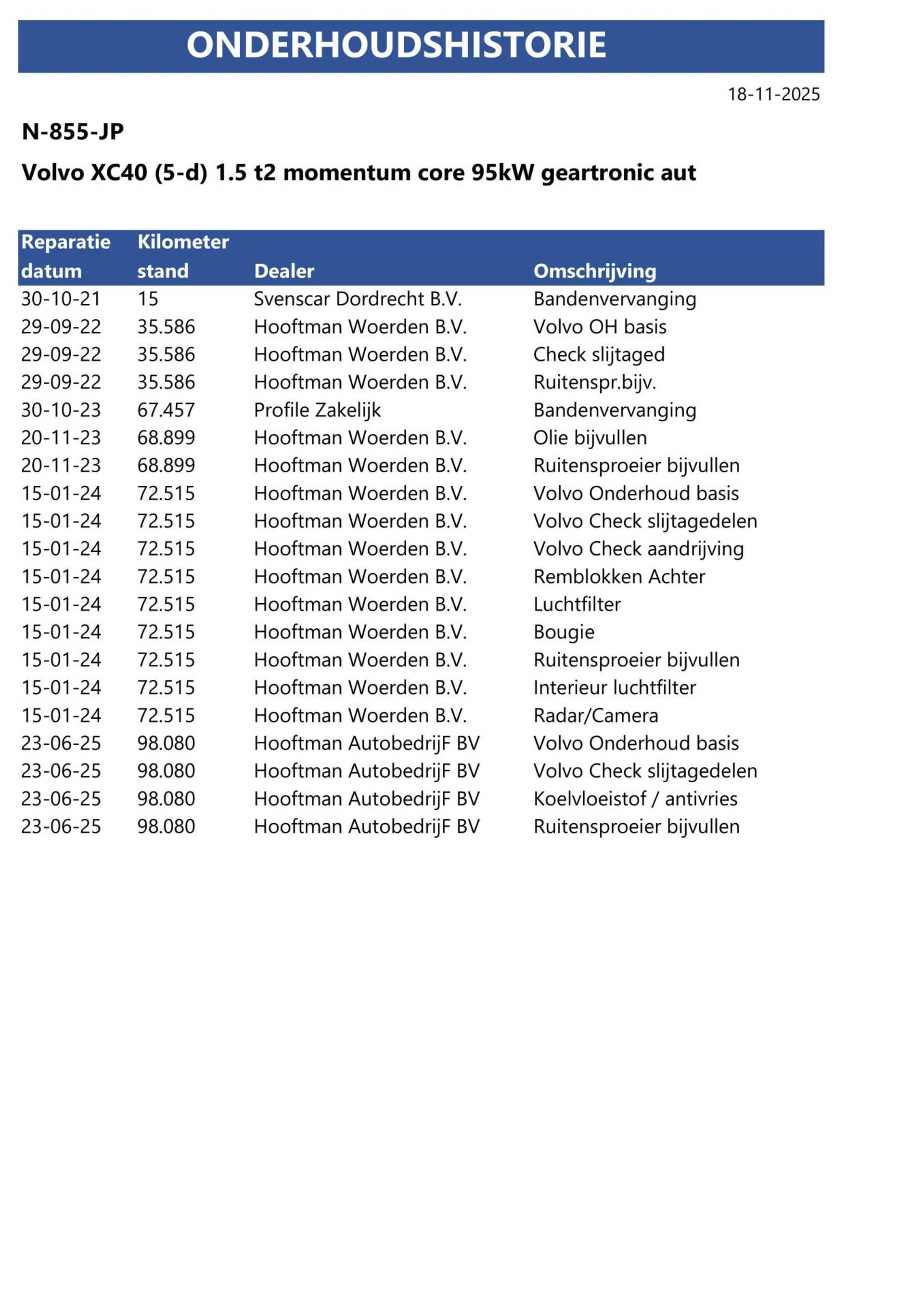 ✓ Onderhoud verleden aanwezig